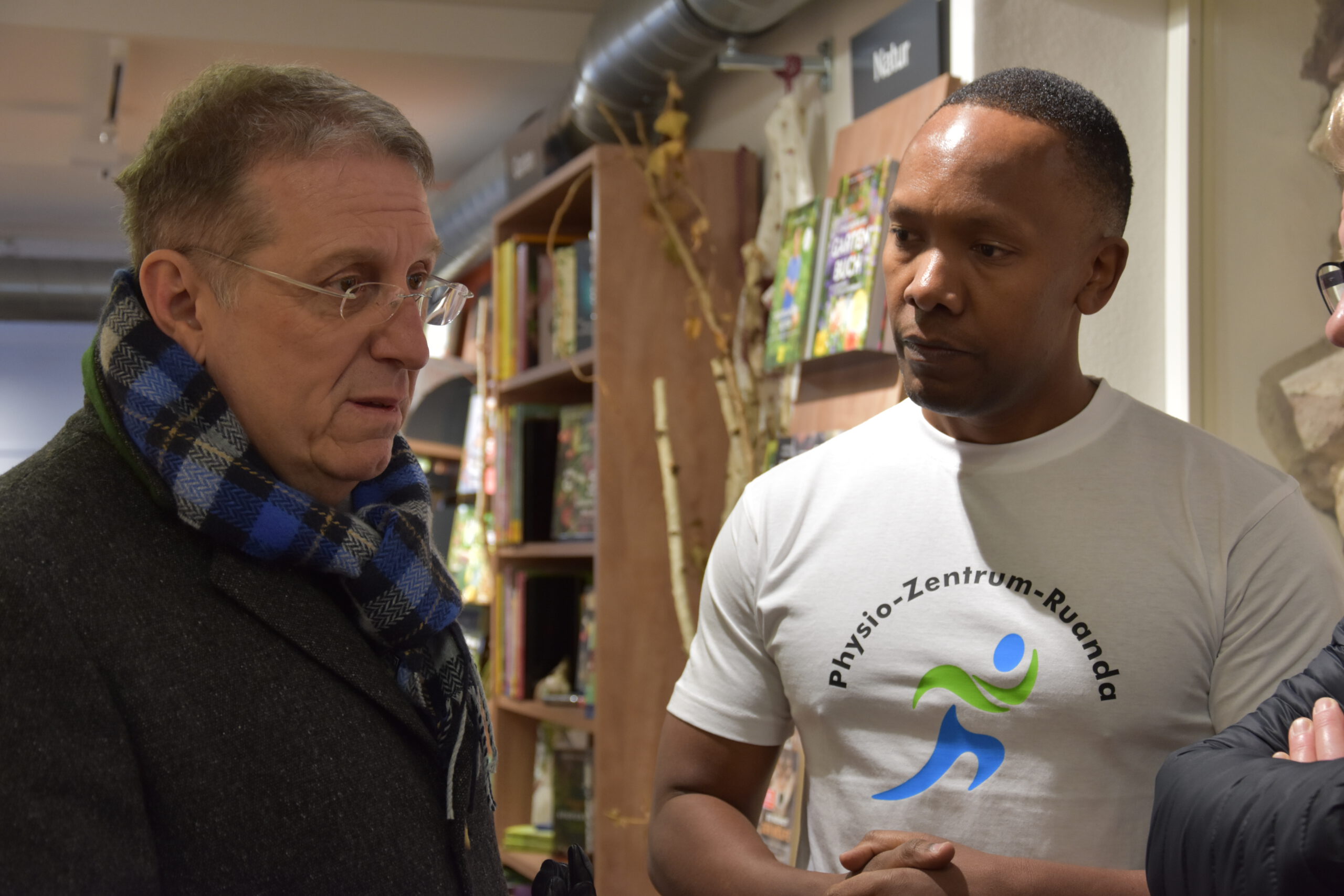 „Kulmbach bewegt“ war eine Veranstaltung, die am 15.02.2020 in Kulmbach, oder genauer gesagt in der Buchhandlung Friedrich, stattgefunden hatte. Für Abou Musagara und sein Projekt, dem Aufbau eines Physiozentrums in Ruanda, sammelten wir mit Hilfe eines bunten Rahmenprogramms Gelder. Die Vorbereitungen hierfür begannen jedoch bereits im November 2019. Im vergangenen Jahr, ich hatte „Die KulmBloggera“ gerade erst ins Leben gerufen, kam Abou auf mich zu und schrieb mir eine sehr nette Nachricht. Er stellte sich vor und erläuterte mir sein Anliegen. Ich erfuhr in dieser Nachricht wer er war und wofür er meine Hilfe brauchte. Ich recherchierte über sein Vorhaben im world wide web und wurde fündig. Sein Projekt laß sich großartig und von da an standen wir in Kontakt. Ohne ihn persönlich kennengelernt zu haben, verfasste ich einen Blog-Beitrag und hoffte, dass meine wenigen Leser diesen ebenso inspirierend fanden, wie ich es tat. Das Feedback war großartig und so schlug ich Abou etwas vor. Meine Idee war, eine Spendenveranstaltung zu organisieren. Ich wollte die Einzelhändler mit Gaben für ein Glücksrad ebenfalls mit ins Boot holen und auch ihnen eine Werbeplattform bieten, wie auch Abous Projekt unterstützen. Es schien mir eine Win-Win-Situation zu sein und zum Glück zeigte er schnell großes Interesse. Unser erstes Treffen fand in Kulmbach, im Café Roberts statt. Wir lernten uns kennen und ich berichtete ihm von meinen Ideen zu unserem künftig gemeinsamen Projekt „Kulmbach bewegt“.